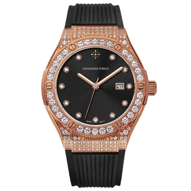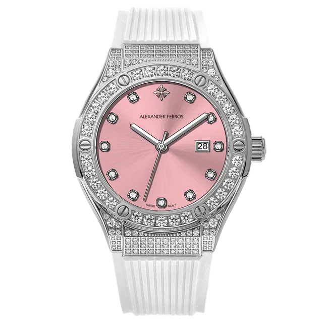 Trong bộ sưu tập đồng hồ nữ của Alexander Ferros, mẫu Alexander Ferros 2251 nổi bật nhờ thiết kế mạnh mẽ, cá tính – lấy cảm hứng từ phong cách đặc trưng của Hublot.
