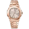 Alexander Ferros 6152R gây ấn tượng với thiết kế sang trọng, vỏ và dây đeo thép không gỉ mạ vàng hồng cao cấp. Mặt số tối giản nhưng tinh tế cùng bộ máy Nhật Bản bền bỉ, chính xác giúp sản phẩm trở thành lựa chọn lý tưởng cho những ai yêu thích sự đẳng cấp và hiện đại.