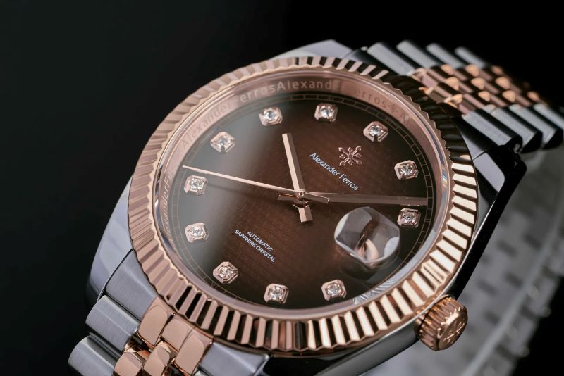 Đồng hồ cao cấp Alexander Ferros model 8032D gây ấn tượng với bộ máy Nhật Bản chính xác, kính sapphire chống trầy và khả năng chống nước tốt.