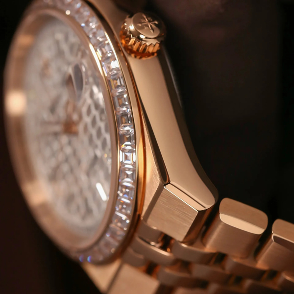 Alexander Ferros 8181R là mẫu đồng hồ sang trọng dành cho những ai yêu thích vẻ đẹp tinh tế. Thiết kế dây demi vàng hồng cao cấp kết hợp mặt số bạc hoặc nâu thanh lịch, viền đá đính tỉ mỉ tạo điểm nhấn nổi bật. Bộ máy Nhật Bản vận hành ổn định, cùng kính sapphire chống trầy xước giúp sản phẩm bền bỉ theo thời gian. Đây là lựa chọn hoàn hảo cho cả công sở lẫn sự kiện.