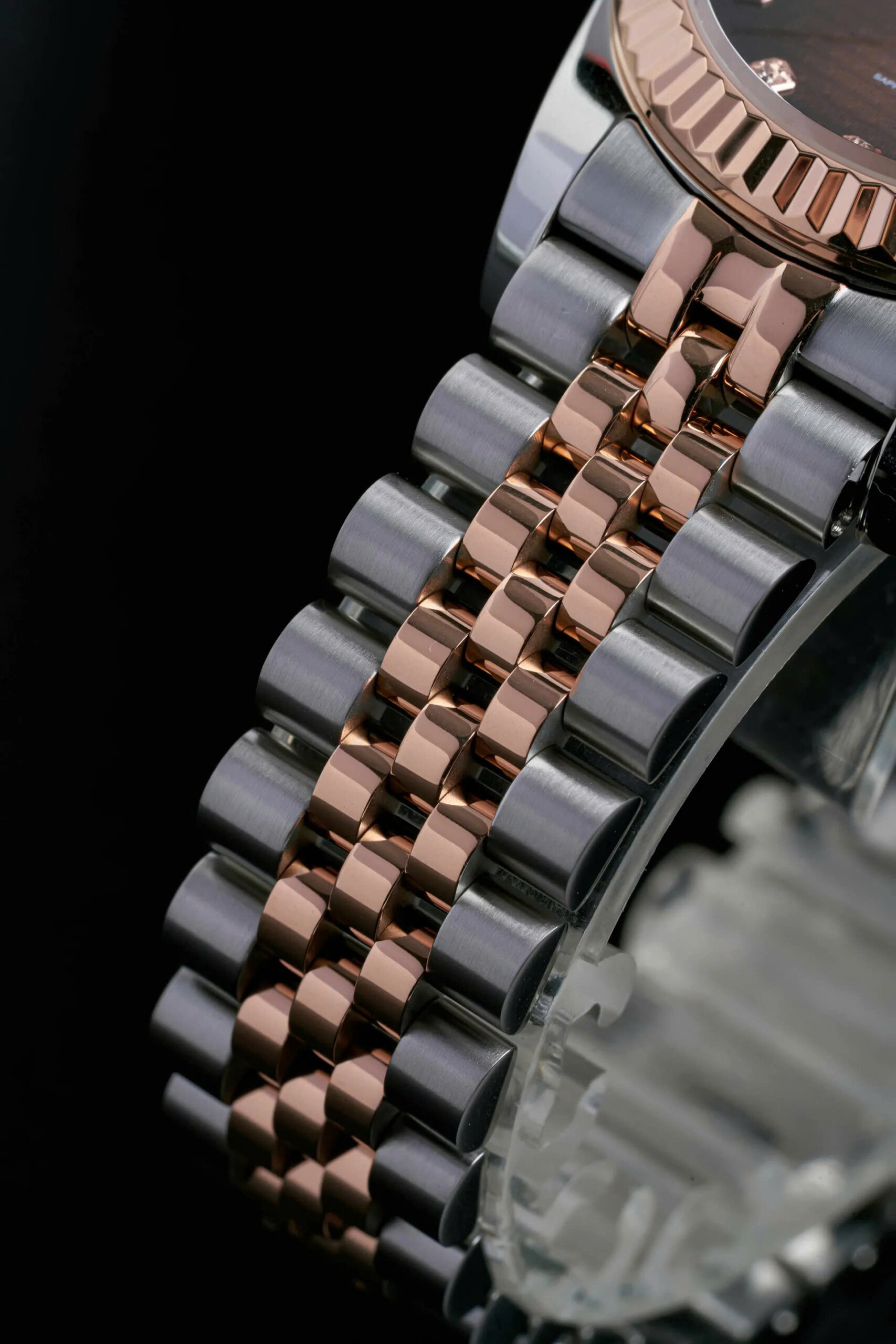 Đồng hồ nữ Alexander Ferros 8192 là mẫu phụ kiện lý tưởng cho phái đẹp yêu thích sự thanh lịch và sang trọng. Sản phẩm sở hữu thiết kế dây demi vàng hồng – bạc hiện đại kết hợp với viền khía nổi bật, mang đến vẻ đẹp thời thượng và tinh tế. Mặt số có ba lựa chọn màu sắc: xanh, đen và nâu, phù hợp với nhiều phong cách và sở thích khác nhau.