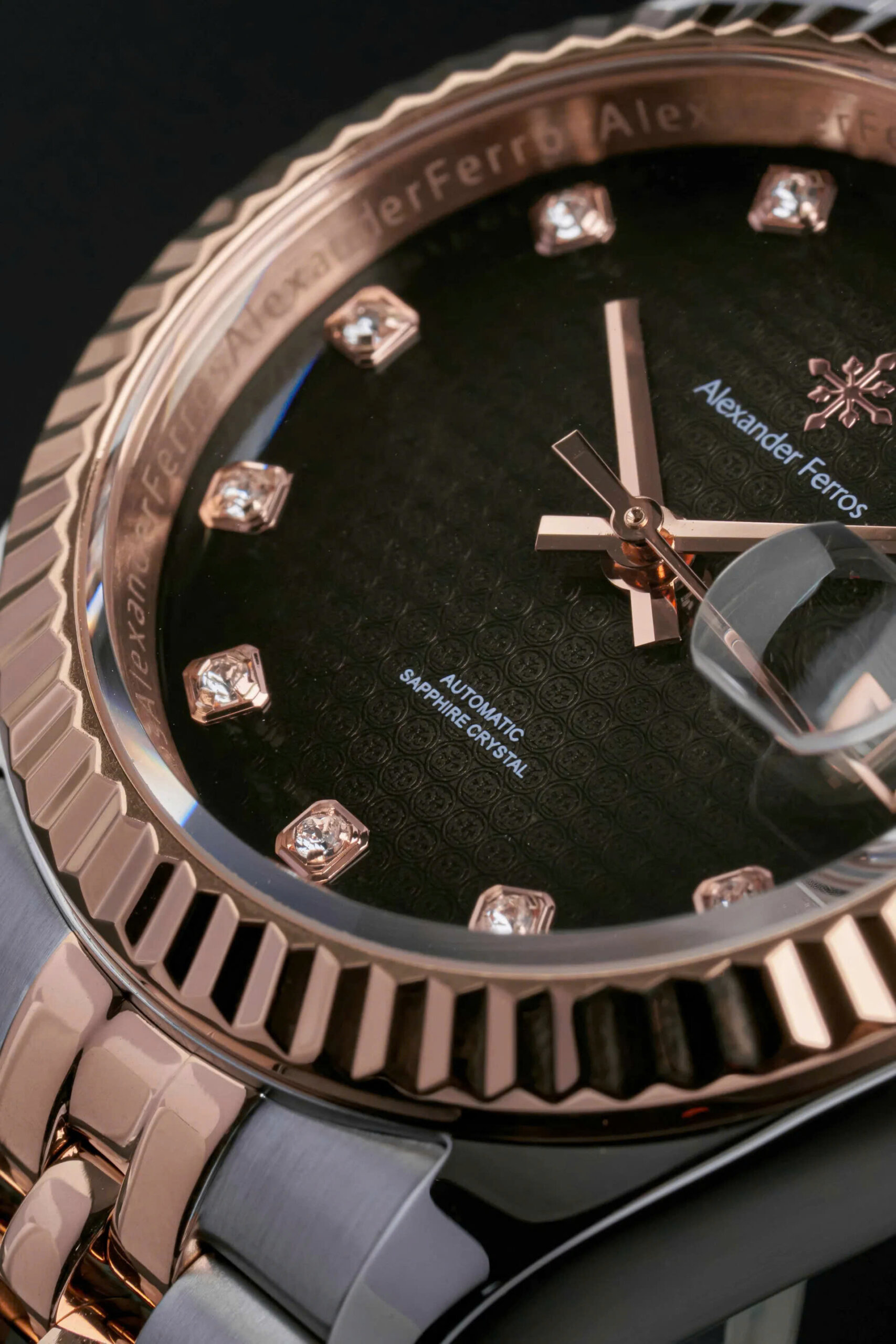 Bộ máy Nhật Bản hoạt động ổn định, chính xác cùng kính sapphire chống trầy xước đảm bảo độ bền vượt trội. Khả năng chống nước tốt giúp người đeo yên tâm trong các hoạt động thường ngày. Alexander Ferros 8192 không chỉ là một chiếc đồng hồ, mà còn là món trang sức khẳng định gu thẩm mỹ đẳng cấp và tự tin của người phụ nữ hiện đại.