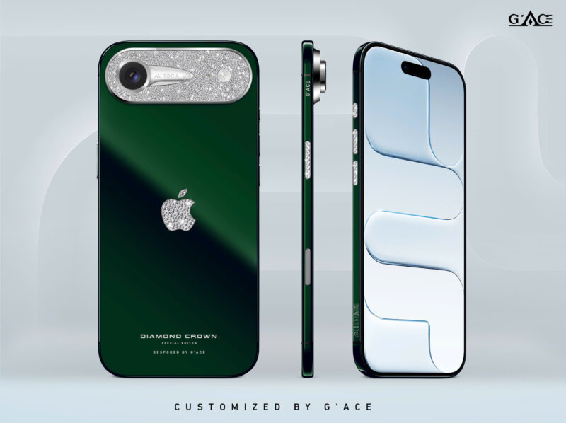 iPhone 17 Air Emerald Ultimate DLC Diamonds Crown – 1 trong số các phiên bản chế tác giới hạn số lượng mang tên Aurora trên iPhone 17 Air. Sản phẩm của G’Ace được HPC Luxury là đại lí ủy quyền chính hãng tại Việt Nam. Quý khách hoàn toàn có thể tùy biến cho chính chiếc iPhone của mình bằng cách “yêu cầu” HPC thêm/ bớt / thay đổi 1 số chi tiết trên sản phẩm như: Khắc tên, logo, ngày sinh, chữ kí, hình vẽ, đính kim cương, …. để “cá nhân hóa” chiếc điện thoại của mình.