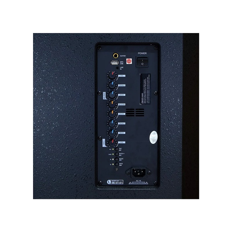 Thùng loa được chế tác từ loại gỗ sơn gai, có khả năng chịu lực và kháng ẩm cực hiệu quả, tăng cường độ bền bỉ theo đặc chuẩn thị trường – điều kiện khí hậu nóng ẩm như Việt Nam, đồng thời đảm bảo được cổng hưởng có lợi phù hợp. Cũng theo đó, việc bảo quản loa cũng dễ dàng hơn khi 4 bánh xe sẽ tiện lợi di chuyển tránh gặp phải thời tiết xấu khi đang hoạt động ngoài trời.