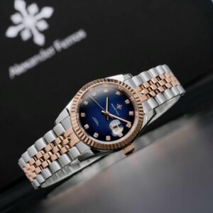 Đồng Hồ Nữ Alexander Ferros 8192D/05 31mm demi vàng hồng mặt số màu xanh Automatic