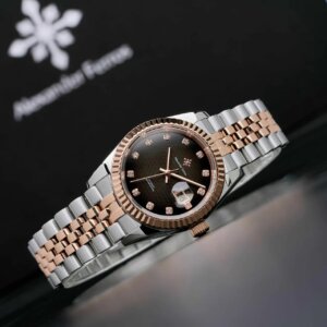 Đồng Hồ Nữ Alexander Ferros 8192D/01 31mm demi vàng hồng mặt số màu đen Automatic