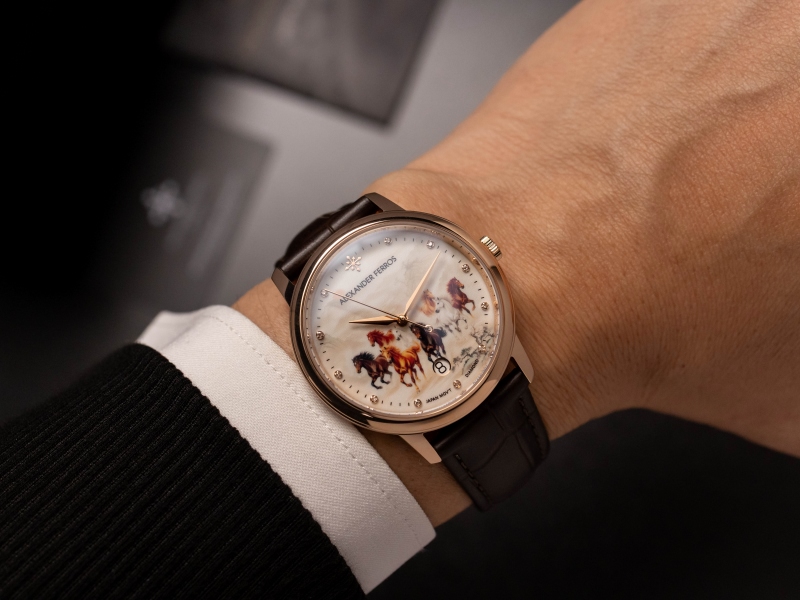Một trong những điểm giúp Alexander Ferros được đánh giá cao trong phân khúc chính là việc sử dụng bộ máy rõ nguồn gốc từ Nhật Bản và Thụy Sĩ, thay vì các dòng máy trôi nổi.